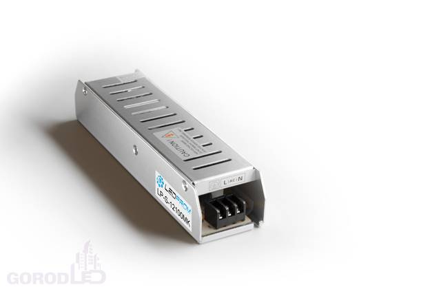 Импульсный источник питания имеет степень герметизации IP22 и предназначен для применения в помещениях, защищенных от попадания влаги, в технических приборах или изделиях. Блок питания для ленты защищен металлическим перфорированным кожухом, который так же способствует отведению тепла от рабочих деталей блока. Подсоединение осуществляется через специальные клеммы, размещенные на лицевой поверхности источника питания.
