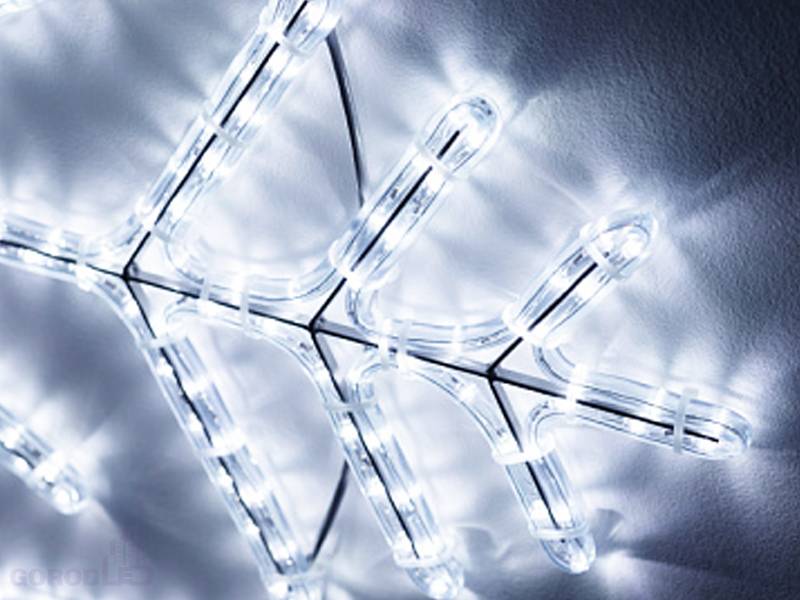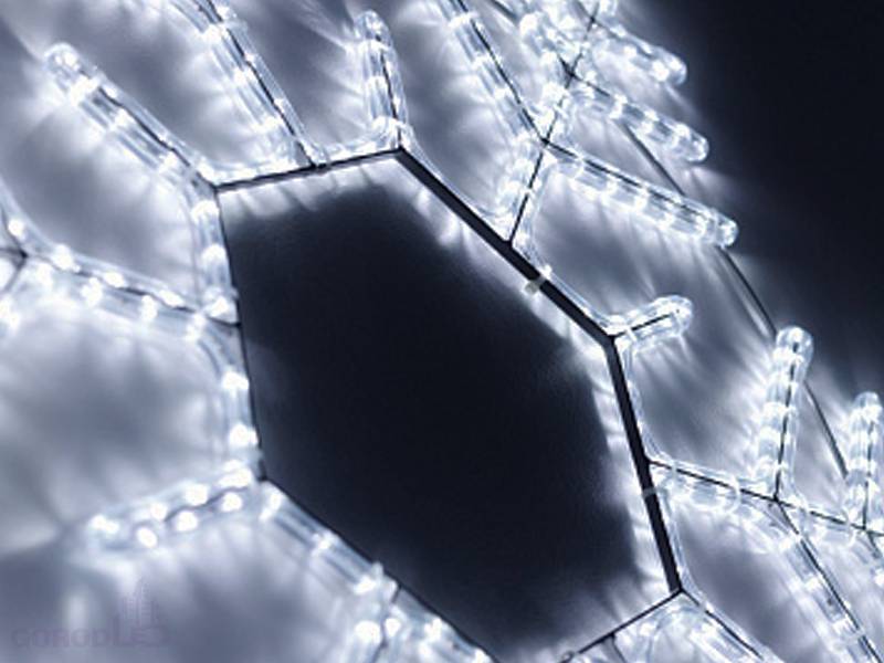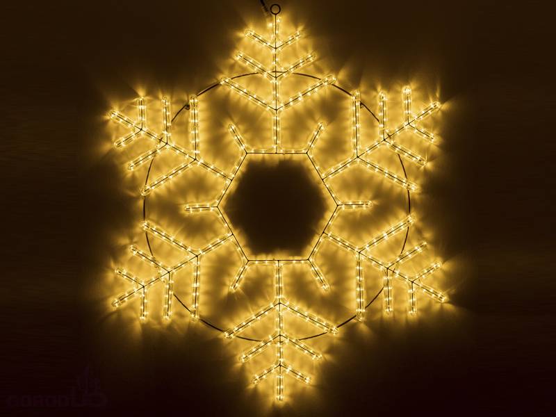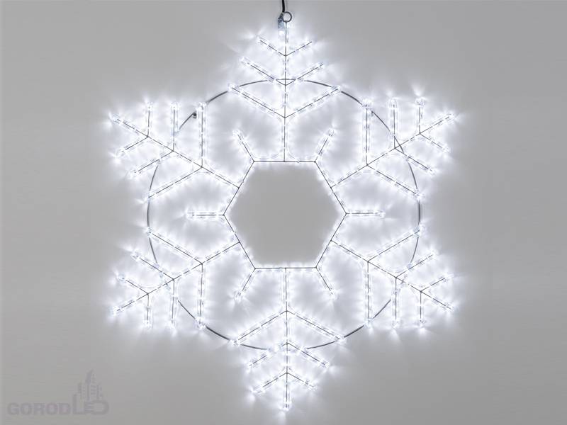 Светодиодная фигура СНЕЖИНКА. Размер 1000x900 мм. Постоянное свечение. 576 светодиодов. Напряжение питания 230 В, потребляемая мощность 35 Вт, степень пылевлагозащиты IP65. Фигура укомплектована проводом питания для подключения к сети 230 В (без вилки питания).