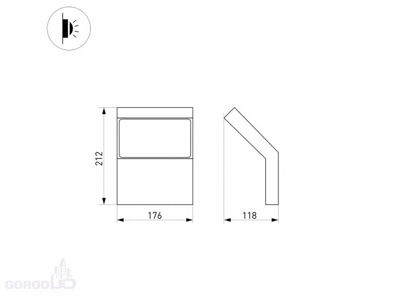 Настенный светильник для подсветки входных групп и фасадов зданий.Цвет Теплый белый 3000К, 9Вт (830лм). Влагозащищенный корпус IP65 - серый алюминий, экран из поликарбоната. Питание 220В, мощность 9Вт. Размеры ДхШхВ 176х118х212 мм.