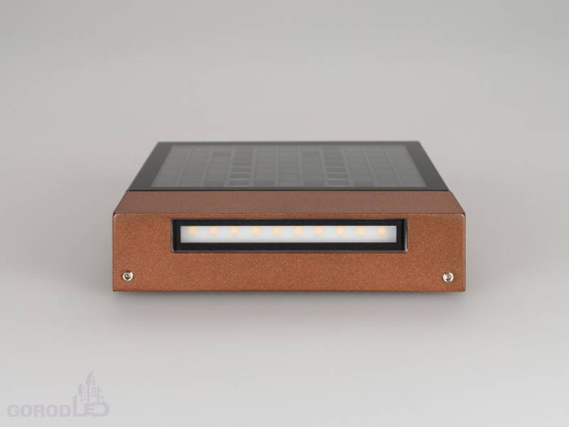 Настенный светильник-указатель. Цвет Теплый белый 3000К, светодиоды 3Вт (150лм). Влагозащищенный корпус IP54 - серый (коричневый) алюминий, экран из закаленного стекла. Питание 220В, мощность 3Вт. Размеры ДхШхВ - 150x200x36мм.