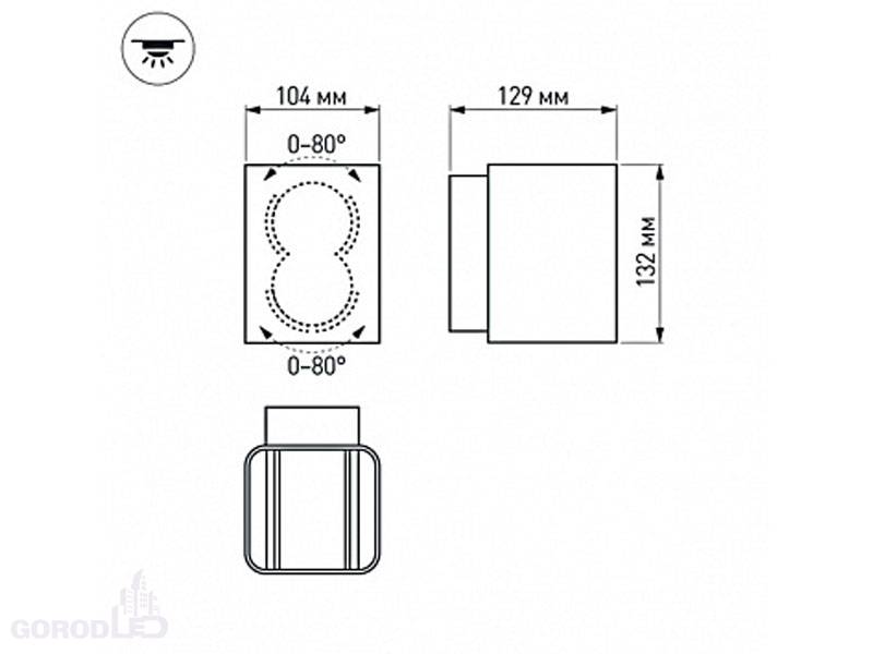 Уличный светодиодный светильник для стен, изменяемый угол освещения 0°-80°, свет вверх-вниз на 2 стороны. Светодиоды 2x6Вт CREE (750 лм). Влагозащищенный корпус IP54 - белый алюминий, экран ударопрочный PC. Питание 220В, мощность 12 Вт. Размеры ВхШхГ -138х104х129 мм.