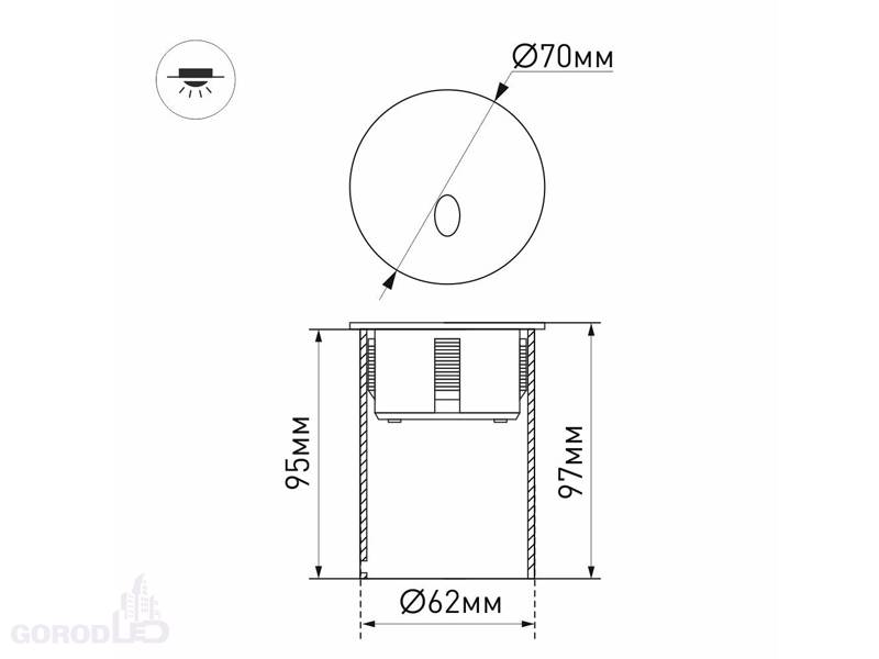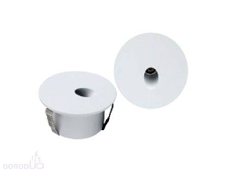 Светодиодный встраиваемый круглый светильник для стен, лестниц, 3Вт. Световой поток 110-130лм, угол 30°, CRI>80. Влагозащищенный корпус IP65, белый алюминий. Питание AC230V, мощность 3Вт. Размеры DxH 70x97мм (закладная часть Ø62x95мм).