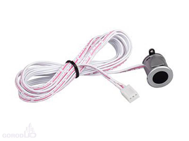Бесконтактный ИК датчик для светодиодной ленты. Работает совместно с диммером SR-2901 (отдельно). Размер датчика D17 мм (для сверления) x H20 мм, кабель 1,5м. Напряжение питания 5В.