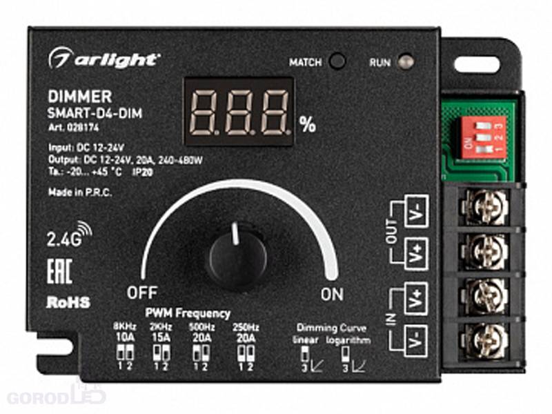 Диммер SMART-D4-DIM (12-24V, 1x20A. 2.4G)