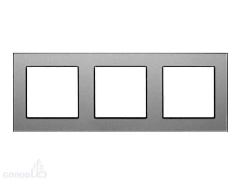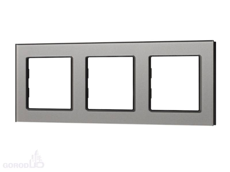 Рамка стеклянная на 3 поста, под встраиваемый механизм (квадрат). Цвет - серый. Ориентации монтажа - горизонтальная. Габаритные размеры: длина 224 мм, ширина 82 мм, высота 10 мм. Гарантийный срок 12 мес.