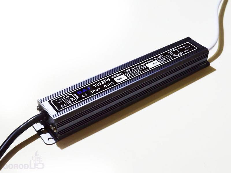 Импульсный источник питания имеет степень герметизации IP67 и предназначен для применения в помещениях с повышенным уровнем влажности или на улице. Блок защищен алюминиевым корпусом, который так же способствует отведению тепла от рабочих деталей блока. Подсоединение осуществляется через специальные провода, выведенны на лицевую поверхность источника питания.