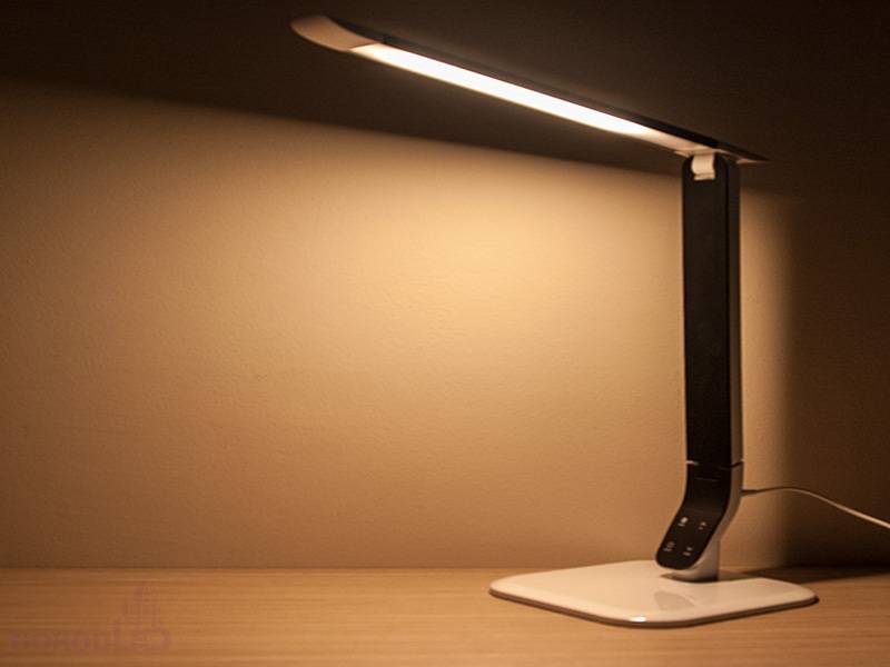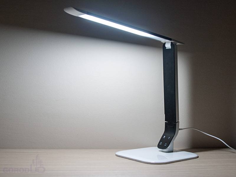 3 цвета свечения, 5 уровней яркости, сенсорное управление, ультра-тонкое основание и рожок, возможность вращения на 360 градусов.