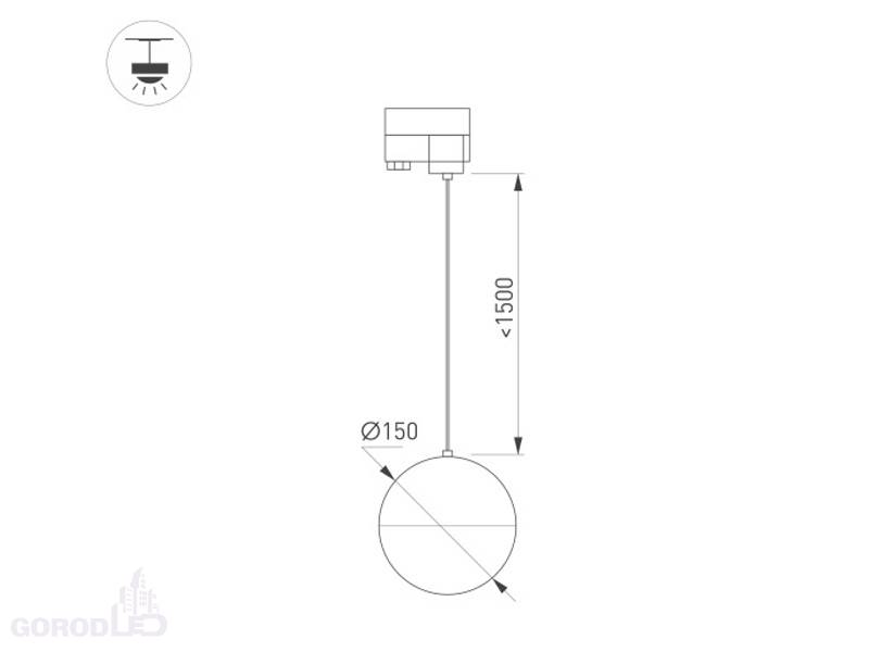 Размер: диаметр 150 мм, длина подвеса 1500 мм. Монтаж на трек 1-фазный. Драйвер 28-42 В, 250 мА, пульсация <1%.