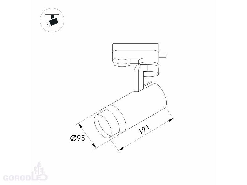 Размер: диаметр 95 мм, высота 191 мм. Монтаж на трек 3-фазный. Драйвер встроенный 9-47 В, 1000 мА., пульсация <5%.