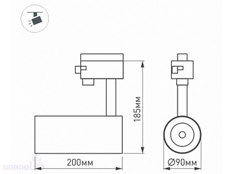 Черный круглый корпус из алюминия, материал линзы PC/PMMA , степень защиты IP20. Размер: диаметр 90 мм, высота 185 мм.