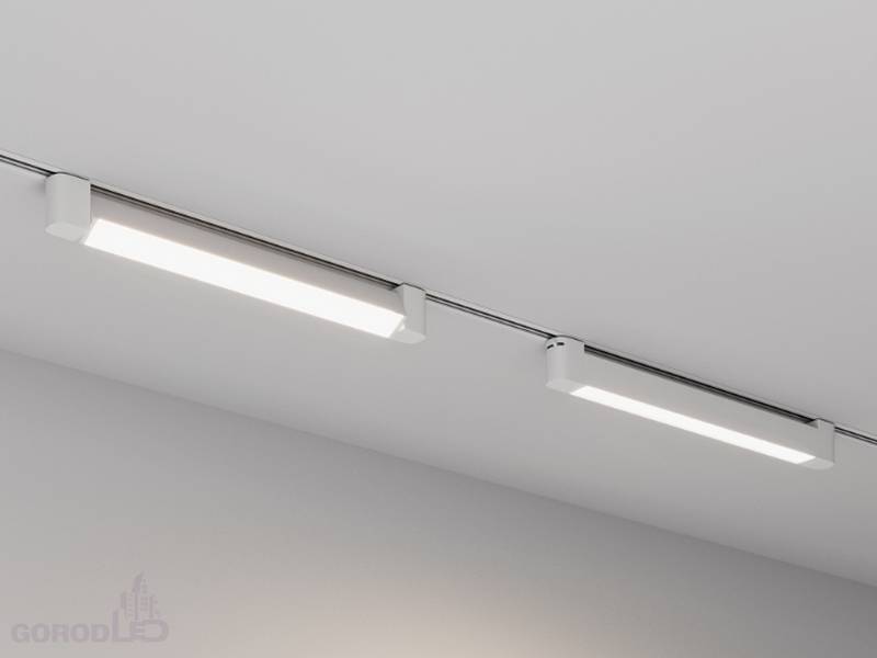 Светильник подвесной для треков/шин 2 провода. Угол поворота светильника 90°(45°+45°). Мощность 10 Вт, св. поток 800 лм, 80 лм/Вт, теплый 3000 K, дневной 4000 К, CRI>90, угол 100°, напряжение питания 230 В. Черный или белый корпус из алюминия, материал рассеивателя PC, степень защиты IP20. Размер: длина 343 мм, ширина 33 мм, высота 50 мм. Монтаж на трек 1-фазный. Драйвер встроенный, пульсация <1%.
