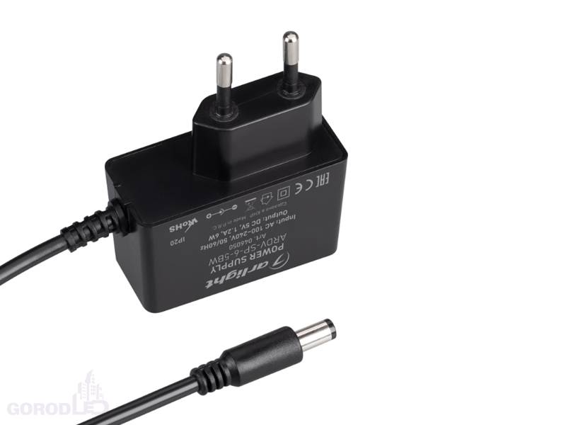 Сетевой адаптер с гальванической развязкой для светодиодных изделий. Входное напряжение 100-240 VAC. Выходные параметры: 5 В, 1.2 А, 12 В, 0.5 А, 6 Вт. Негерметичный пластиковый корпус IP 20. Габаритные размеры длина 58 мм, ширина 26 мм, высота 75 мм. Длина кабеля 1.5 м, коннектор 5.5x2.1x10мм. Гарантийный срок 5 лет.