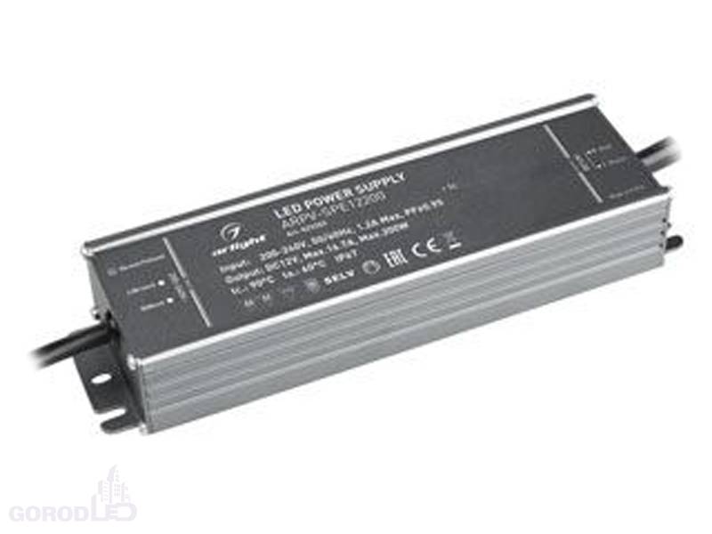 Блок питания 12V с гальванической развязкой, ток 16,7А, 200Вт, герметичный, для светодиодных изделий. Алюминиевый корпус IP67. Совместимость со стандартом EMC. Габариты L221xW61xH36 mm. Вход. напряж-е 200-240V AC, выход 12V DC +-5%, коэффициент мощности PF>0,95. Диапазон раб. темп. -40..+60 С. Гарантия 5 лет