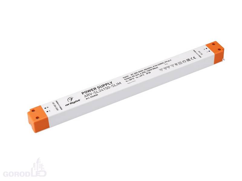 Блок питания 150Вт, с корректором мощности, PF>0,9. Сверхтонкий пластиковый корпус IP20. Вход: 220-240VAC. Размер 350х31х24 mm. Совместимость со стандартом EMC. Гарантия 3 года.