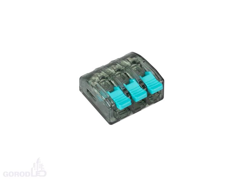 Соединительная компактная клемма для 3-х медных проводников. Прозрачный корпус. Тип разъема - рычажок. Максимальное сечение проводников: многопроволочные: 0,5-2.5 мм2, однопроволочные 0,5-4 мм2. Необходимая длина зачистки изоляции 11 мм. Максимальный ток 32А. 20шт. в коробке.