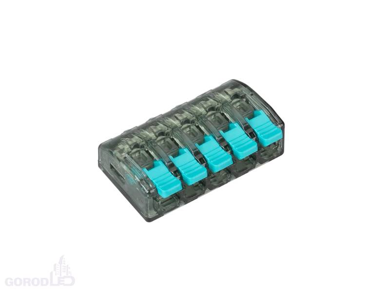 Соединительная компактная клемма для 5-ти медных проводников. Прозрачный корпус. Тип разъема - рычажок. Максимальное сечение проводников: многопроволочные: 0,5-2.5 мм2, однопроволочные 0,5-4 мм2. Необходимая длина зачистки изоляции 11 мм. Максимальный ток 32А. 20шт. в коробке.