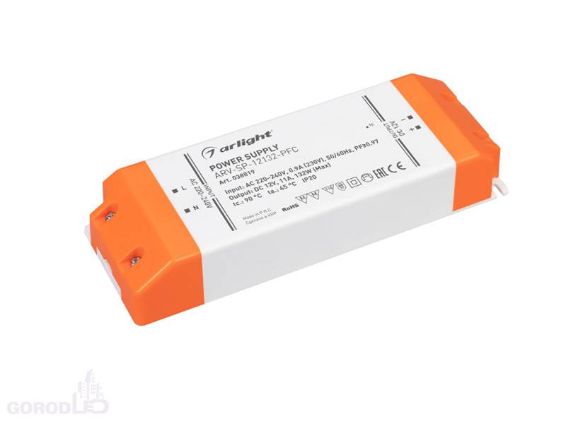 Источник напряжения с гальванической развязкой для светодиодных изделий. Входное напряжение 220-240 VAC. Выходные параметры: 12 В, 11 А, 132 Вт. Встроенный PFC >0.97. Негерметичный пластиковый корпус IP 20. Габаритные размеры длина 179,4 мм, ширина 62,5 мм, высота 30,6 мм. Гарантийный срок 5 лет.