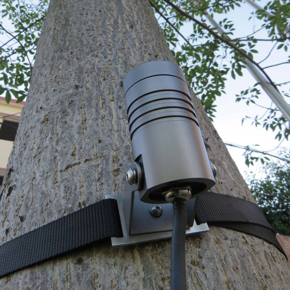 Основание из нержавеющей стали AISI 304 на нейлоновом ремне с фиксатором для установки прожекторов малой мощности серий RAY и RAY-ZOOM на дерево или цилиндрическую опору.