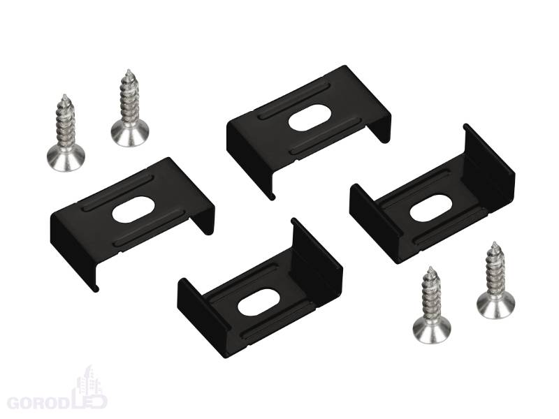 Стальные держатели черного цвета (4 шт.) предназначены для установки профилей SL-LINE-2020 и SL-LINE-2013 на поверхность. Защелкивающийся механизм крепежа позволяет легко монтировать/демонтировать профиль, что облегчает установку и дальнейшее обслуживание светильника.