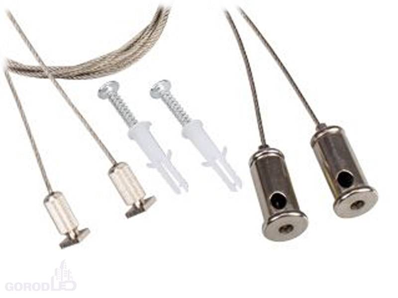 Стальной тросик (2000 мм) с держателями в паз и под винт для подвешивания профиля ARH-LINE-3750, SL-LINE-xx и других с пазом не менее 9х2мм (ШхГ). В коплекте 2шт тросика с держателями, 2 шурупа с дюбелем. Цена за комплект.