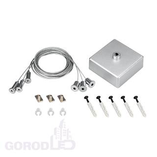 2м подвес для профилей SL-LINE, S2-LINE, SL-ARC (для профиля 2-2.5 м). В комплекте: накладная чашка (серебро) - 1шт., трос 2м - 3шт., винт с площадкой 9мм - 2шт.. Максимальная нагрузка на 1 тросик 17,5 кг. Цена за 1 комплект.