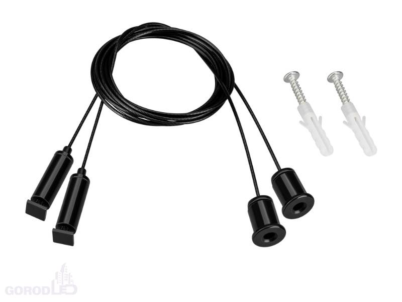 Подвес для профилей SL-LINE, S2-LINE, SL-ARC. Цвет - черный. В комплекте: трос 2 м - 2 шт., шуруп с дюбелем - 2 шт. Максимальная нагрузка на 1 трос 15 кг. Цена за комплект.