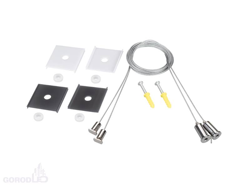 2м подвес для профилей LINE-5050-DUAL с экранными вставками. В комплекте: трос 2 м - 2шт., винт с площадкой - 2шт, шуруп - 2 шт., дюбель - 2 шт., вставка из матового экрана шириной 5 см с отверстием - 2 шт., вставка из черного экрана шириной 5 см с отверстием - 2 шт., прозрачные втулки - 4 шт. Максимальная нагрузка на 1 тросик 7 кг.Цена за 1 комплект.