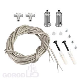 Токопроводящий подвес серии ARL для профилей SL-LINE-3535, 5050, 3667, 3691, 4932, 5050, 4970, 7477, 2011М, SL-LINIA49-F, 62-F, 88-F, SL-ARC-3535. В комплекте: трос 2 м - 1 шт., трос 2 м с токопроводящим медным сечением -1 шт., тросовый держатель - 2 шт., фиксатор для троса - 2 шт., винт крепежный металлический - 4 шт., винт крепежный из поликарбоната прозрачный - 2 шт., шуруп - 4 шт., дюбель - 4 шт.. Сечение кабеля - 0,5 мм². Максимальный вес нагрузки на один трос - 4 кг. Падение напряжения на 1 м. – 0,1 В. Максимальное напряжение нагрузки – 250 В. Максимальный ток нагрузки – 2 А. Цена за 1 комплект.