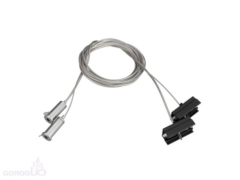 Токопроводящий подвес для профилей SL-LINE-25100-DUAL. В комплекте: трос 2м-1шт, трос 2м. с токопроводящим медным сечением-1шт, тросовый держатель, фиксатор для троса. Цена за 1 комплект.