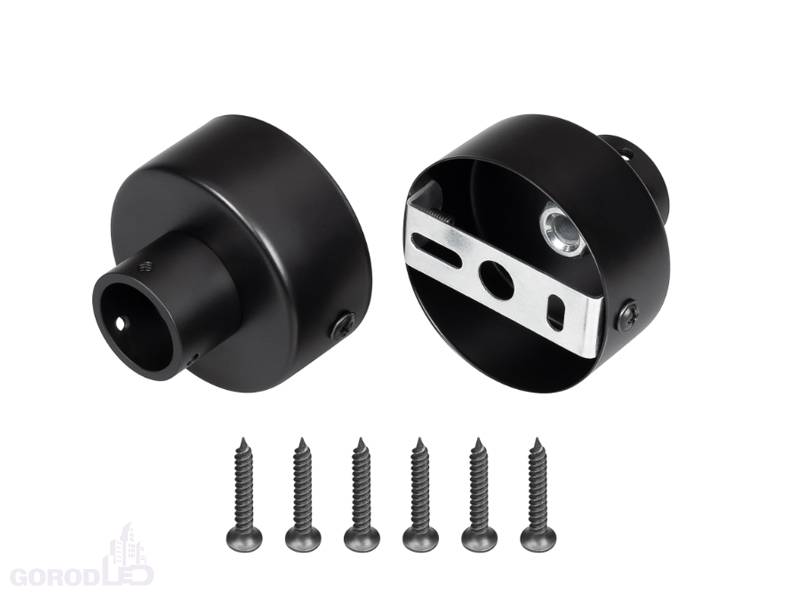 Потолочная чаша для профилей WPH-FLEX-D22, WPH-FLEX-ROPE-D22. В комплекте: потолочная чаша с накладным креплением - 2 шт, соединительный винт - 2 шт., стальной держатель - 2 шт., винты - 4 шт., саморезы - 4 шт., маленькие саморезы - 6 шт. Цвет - черный. Цена за 1 комплект.