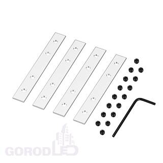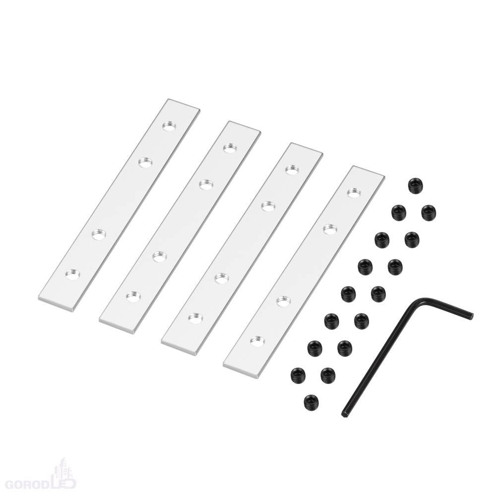 Коннекторы (4 шт.) для соединения двух отрезков профилей серии LINIA49-F-S в прямую линию. Устанавливаются в паз, фиксируются идущими в комплекте винтами. При установке соединителей на боковые стенки профиля необходимо закручивать винты с минимальным усилием, до первого ощущения сопротивления.