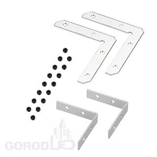 Коннекторы (4 шт.) для соединения двух отрезков профилей серии LINIA49-F-S под углом 90°. Устанавливаются в паз, фиксируются идущими в комплекте винтами. При установке соединителей на боковые стенки профиля необходимо закручивать винты с минимальным усилием, до первого ощущения сопротивления.