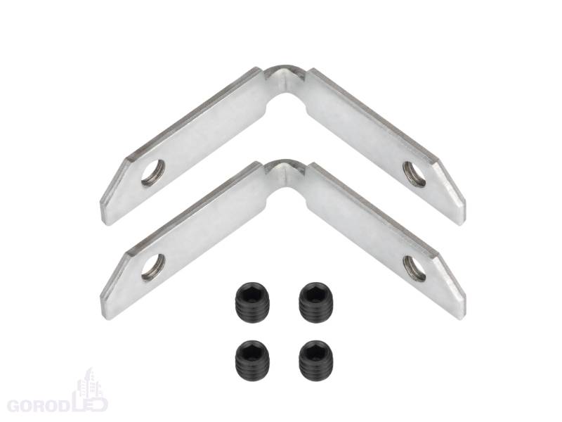Коннекторы (2 шт.) для соединения двух отрезков профиля MAG-STRETCH-ORIENT под углом 90 градусов. Устанавливаются в вертикальный паз, фиксируются идущими в комплекте винтами. Применяются при изготовлении светильников сложной геометрии.