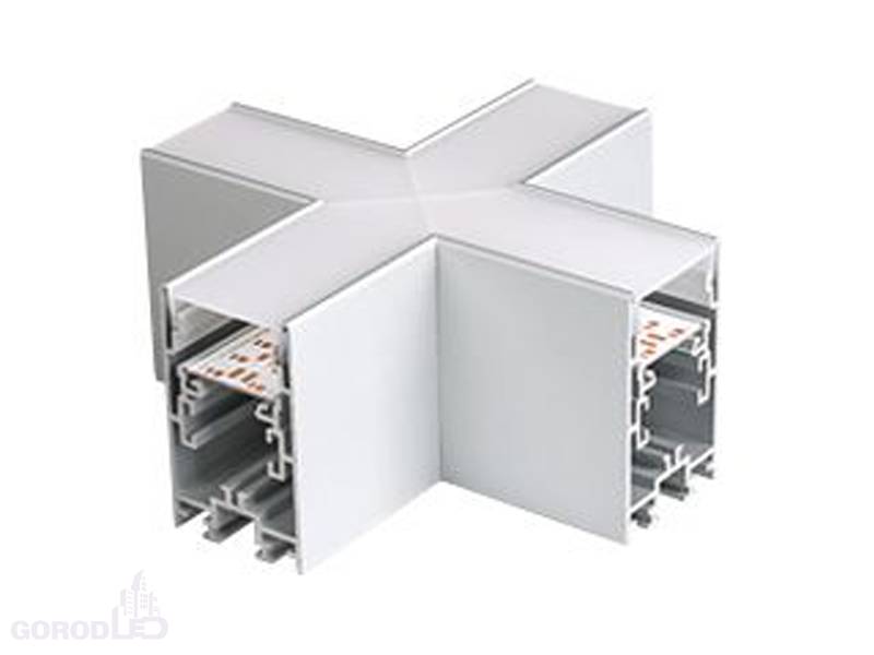 Крестовой угол в сборе, для соединения 4-х профилей S2-LINE-4067 под прямыми углами 90°. Экран образует линию "Х" на плоскости. В комплекте матовый экран, площадка для ленты, соединители. Размеры 150х150 мм.