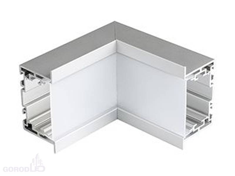 Внутрений прямой угол в сборе для соединения 2-х профилей S2-LINIA69-F под прямым углом 90°. Экран образует линию внутри угла. В комплекте матовый экран, соединители . Длина внешней стороны угла 100мм.