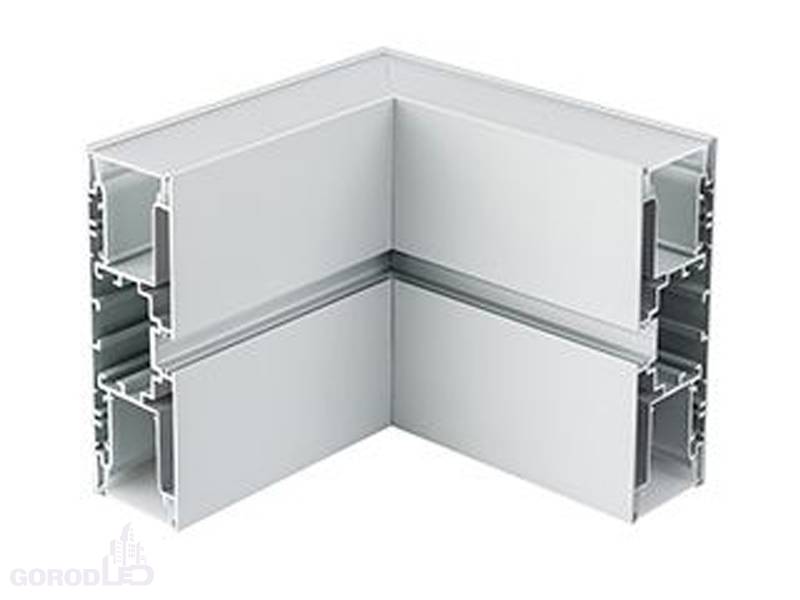 Состыковочный угол в сборе, для соединения 2-х профилей S2-WALL-X2-H128 под углом 90°, в комплекте с экраном. Накладная панель снаружи угла. В комплекте матовый экран с выпуском 20мм для подрезки, соединители. Длина внешней стороны угла 150мм.