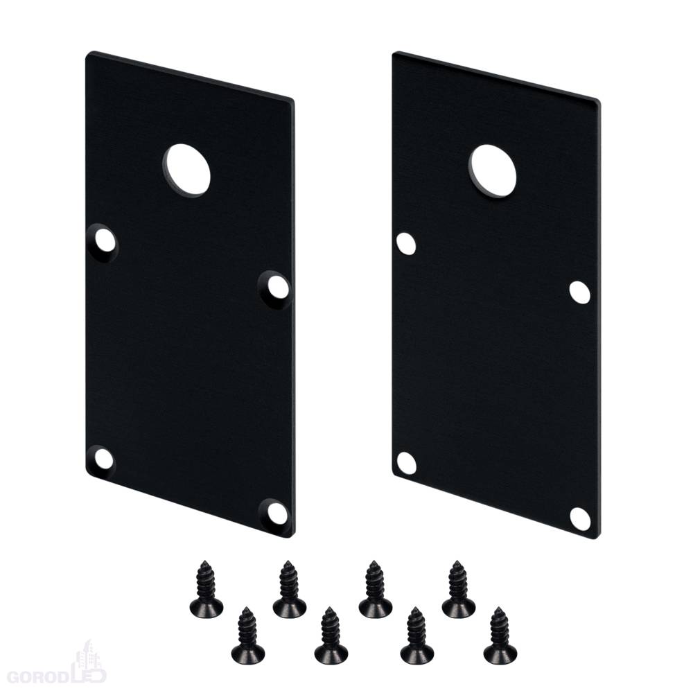 Пара заглушек с отверстием для профиля LINE-S-3667. В комплекте 2 заглушки, 8 шурупов. Цвет - черный. Цена за весь комплект.