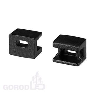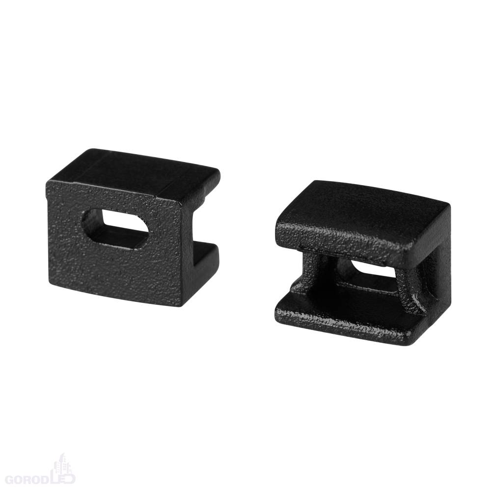 Черные заглушки (2 шт.) с отверстием для профиля PLINTUS-FANTOM-BENT при использовании силиконового экрана. Придают законченный вид светильнику, а также защищают светодиодную ленту от внешних факторов (грязи, пыли и прочего). Отверстие в заглушке позволяет вывести кабель питания светодиодной ленты.