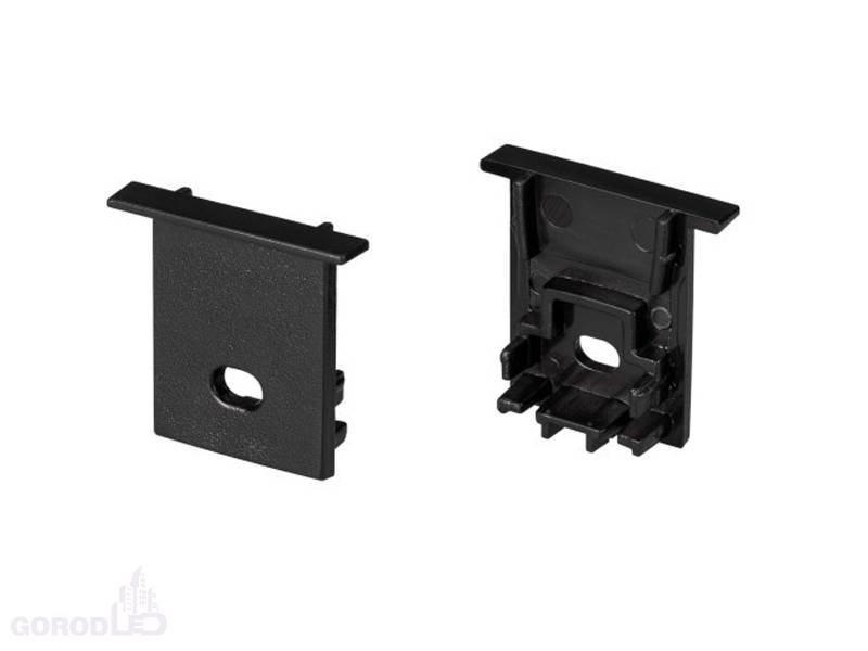 Пара заглушек черного цвета (с отверстием) для профиля SL-COMFORT-1722-F BLACK. В комплекте 2 заглушки. Цена за комплект.