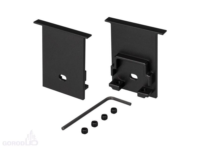 Пара заглушек черного цвета (с отверстием) для профиля SL-COMFORT-3551-F BLACK. В комплекте 2 заглушки, 4 винта, шестигранный ключ. Цена за комплект.