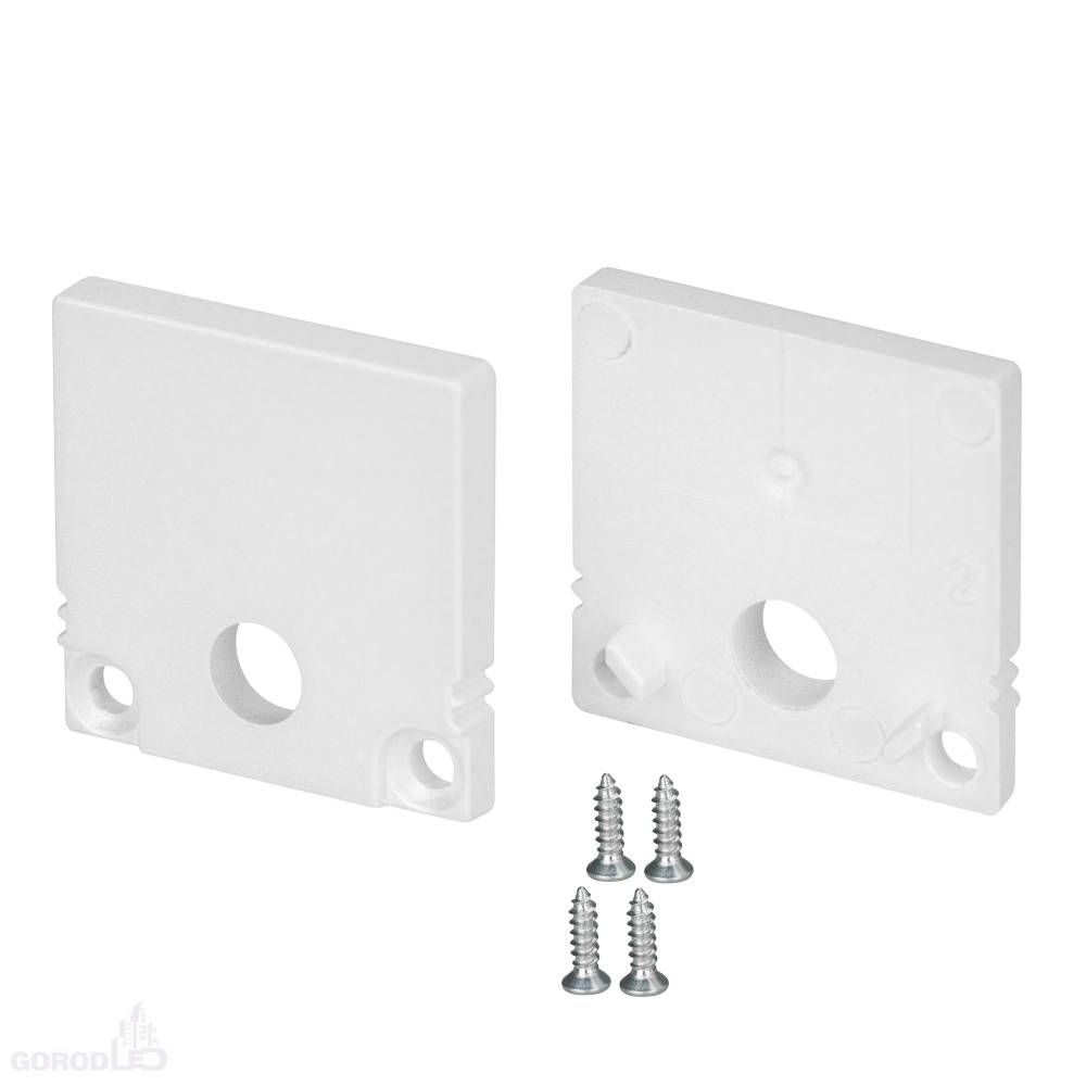 Пара заглушек белого цвета с отверстием для профиля SL-SLIM20-H20. В комплекте 2 заглушки, 4 шурупа. Придают законченный вид светильнику, а также защищают светодиодную ленту от внешних факторов (грязи, пыли и прочего). Отверстие в заглушке позволяет вывести кабель питания светодиодной ленты. Цена за комплект.