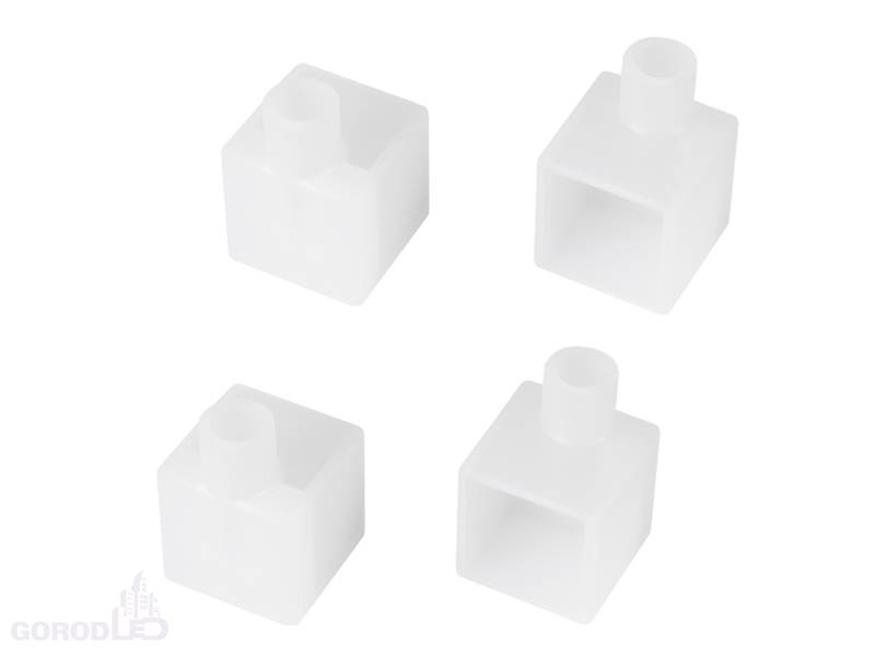 Белые силиконовые заглушки (4 шт.) с боковым отверстием для профиля WPH-FLEX-1616. Придают законченный вид светильнику, а также защищают светодиодную ленту от внешних факторов (грязи, пыли и прочего). Отверстие в заглушке позволяет вывести кабель питания светодиодной ленты.