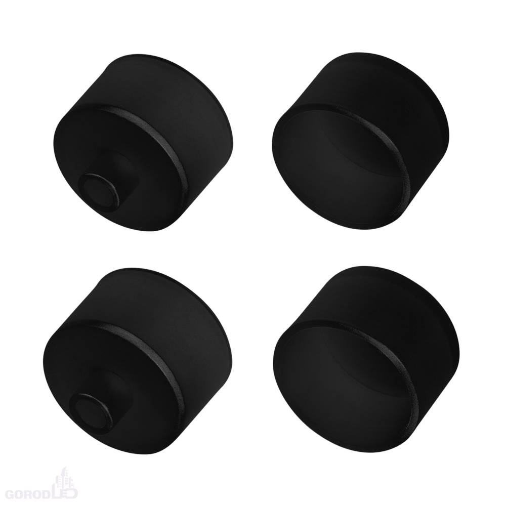 Черные силиконовые заглушки (4 шт.) с отверстием для профиля WPH-FLEX-D22-360deg. Придают законченный вид светильнику, а также защищают светодиодную ленту от внешних факторов (грязи, пыли и прочего). Отверстие в заглушке позволяет вывести кабель питания светодиодной ленты.