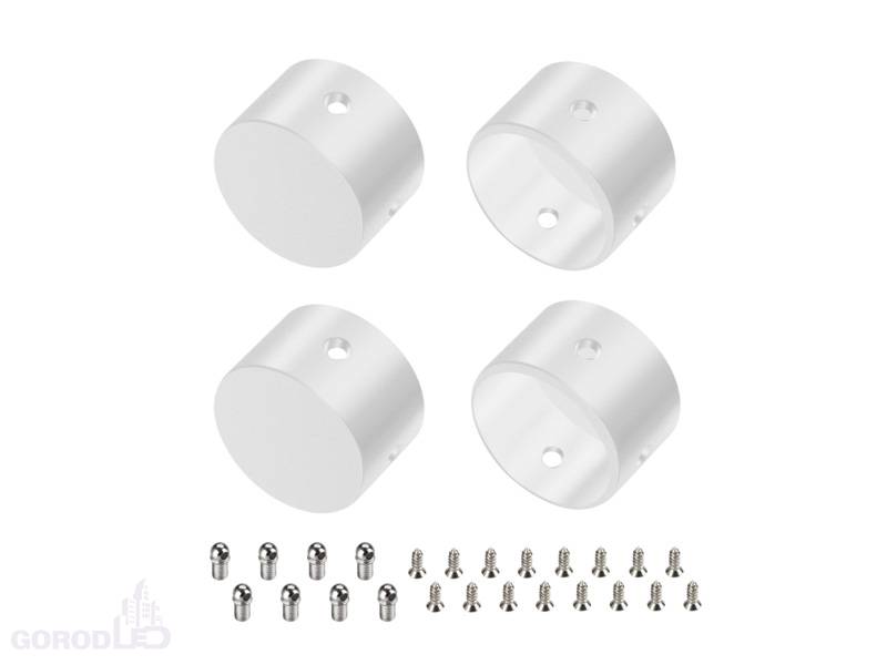 Глухая заглушка для силиконовых профилей WPH-FLEX-D22, WPH-FLEX-ROPE-D22. Материал - металл, цвет - белый. В комплекте 4 заглушки, 16 саморезов. Цена за комплект.