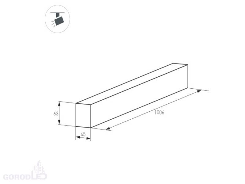 Размер: (ДxШxВ) 1000 x 45 x 63 мм. Размер (с учетом заглушек) (ДxШxВ) 1006 x 45 x 63 мм. При встраиваемом монтаже установка в отверстие (ДхШхВ) 1007 x 46 x 63 мм.