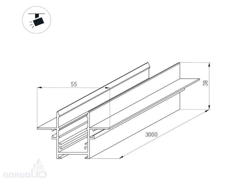 Встраиваемый магнитный трек с фланцем для монтажа в гипсокартонный потолок, длина 3000 мм. DC24V, позволяет диммировать светильники по протоколу DALI. Материал алюминий, цвет черный или белый. Две заглушки в комплекте. Размер ДxШxВ: 3003x55x38 мм. Размер (с учетом заглушек и фланцев).