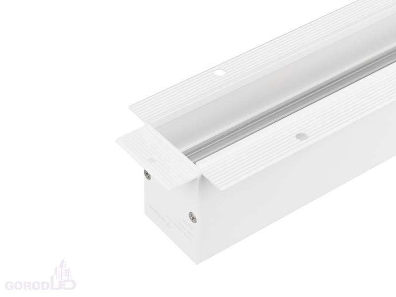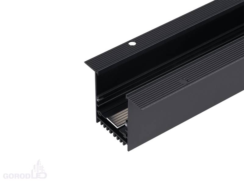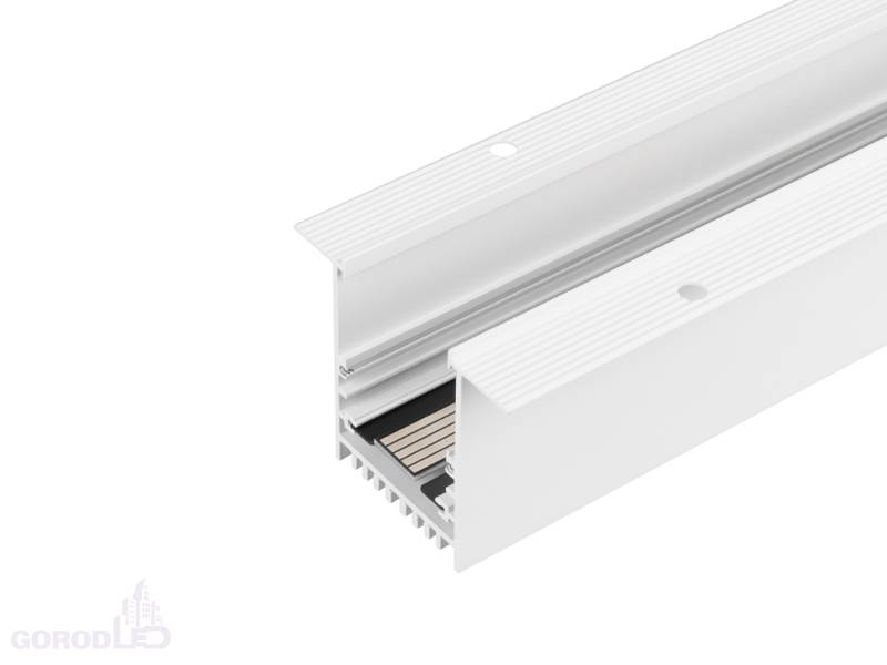 Встраиваемый магнитный трек с фланцем с управлением по DALI, длина 2040мм. DC24V. Материал алюминий, цвет белый или черный. Две заглушки в комплекте. Размер ДxШxВ: 2000x45x60мм. Размер (с учетом заглушек и фланцев) ДxШxВ: 2040x75x60мм. Установка в отверстие ДхШхВ 2015x50x70мм.