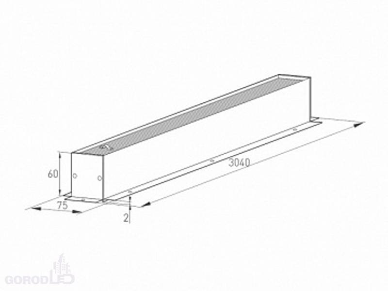 Размер: (ДxШxВ) 3000 x 45 x 60 мм. Размер (с учетом заглушек и фланцев) (ДxШxВ) 3040 x 75 x 60 мм. Установка в отверстие (ДхШхВ) 3015 x 50 x 70 мм.