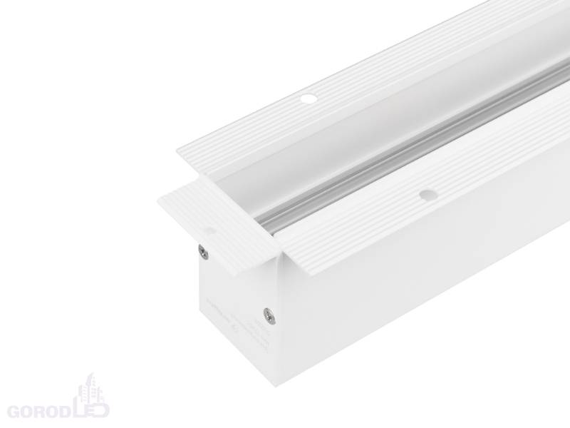 Встраиваемый магнитный трек с фланцем, длина 3040мм. DC24V. Материал алюминий, цвет черный или белый. Две заглушки в комплекте. 5 токопроводящих дорожек (возможность управления DALI) Размер ДxШxВ: 3000x45x60мм. Размер (с учетом заглушек и фланцев) ДxШxВ: 3040x75x60мм. Установка в отверстие ДхШхВ 3015x50x70мм.