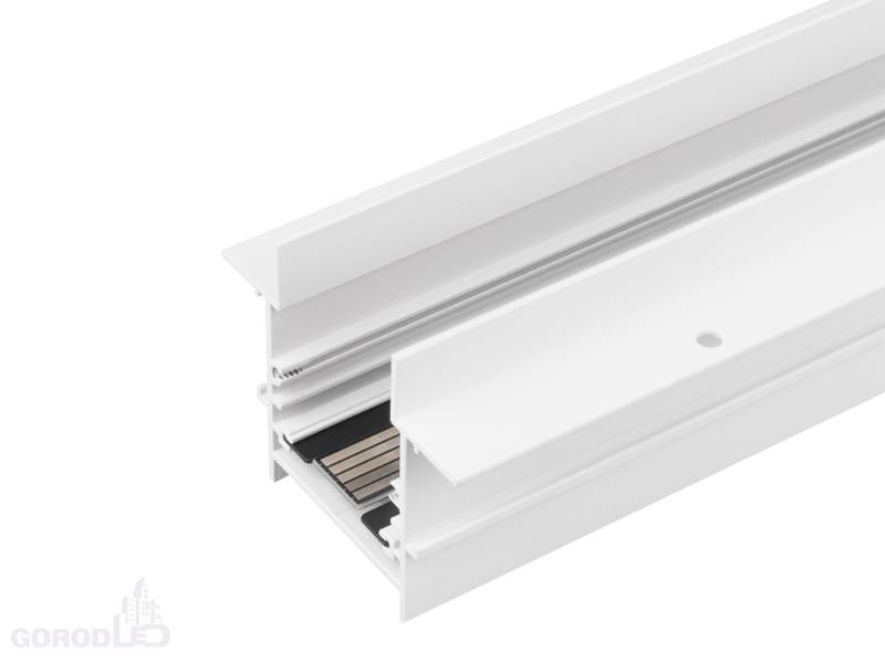 Встраиваемый магнитный трек с фланцем MAG-TRACK-4560-FDW-2000 (WH, 5LN) длиной 2000 мм предназначен для монтажа в гипсокартонный потолок. Две заглушки в комплекте. Размер (с учетом заглушек и фланцев) ДxШxВ: 2040x75x60 мм. Напряжение питания 24 В.